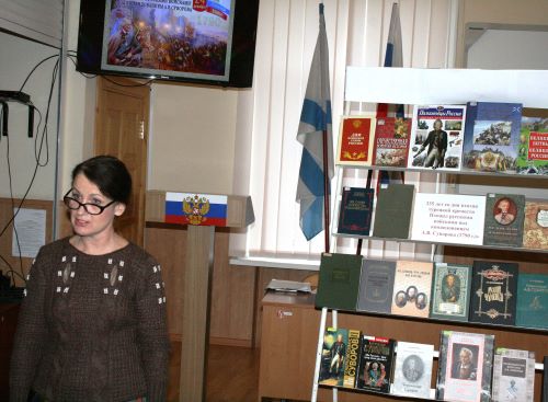Об этом, а также о выдающемся русском полководце А.В. Суворове, библиотекарь Черепнина Л.И. рассказала нахимовцам филиала «Нахимовское военно-морское училище МО РФ» (Севастопольское президентское кадетское училище) и курсантам Черноморского ВВМУ имени П.С. Нахимова.