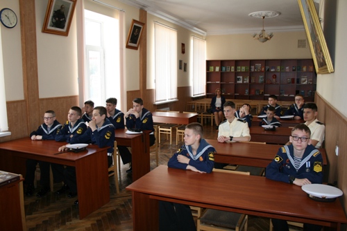 Перед началом мероприятия с нахимовцами была проведена тематическая экскурсия «Морской библиотеке – 200 лет».
