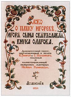 …Объявление о продаже первого издания «Слова о полку Игореве», в «книжных купца Кальчугина лавках, что на Никольской улице, по комиссии за 130 коп. в бумажной обложке» было помещено в газете «Московские ведомости» за 1800 год в № 97 от 5 декабря. Первое издание было отпечатано тиражом 1200 экземпляров в Москве. А дальше произошло всем известное трагическое событие. В Отечественную войну 1812 года во время московского пожара библиотека Мусина-Пушкина сгорела. Вместе с другими ценнейшими рукописными собраниями погиб и единственный список рукописи «Слова». Это была незаменимая потеря для отечественной науки и культуру, так как до сих пор второго древнего списка поэмы обнаружить не удалось. Сгорела и большая часть тиража первого издания «Слова». Таким образом, на сегодняшний день мы располагаем екатерининской копией ХУ111 века древнерусского теста «Слова» и частью его первого издания. Это обстоятельство и определяет особое отношение к первому изданию, как к главному источнику изучения рукописи. Книги первого издания не только сохранили памятник Древней Руси, но и открыли целую эпоху в жизни этого произведения Х11 века. С 1800 года поэма «Слово о полку Игореве» стала неотъемлемой частью русской литературы. Уже первые издатели «Слова» и их современники ощутили в нем дыхание гениальности. Поэма нашла отражение в творчестве Н. Карамзина. Г. Державина, В. Жуковского, А. Пушкина, Н. Гоголя. Известны многочисленные переводы «Слова», сотни исследовательских работ, посвященных поэме; реминисценции «Слова» встречаются в живописи, поэзии, музыке. Не только в русской, но и мировой культуре немного памятников, которые на протяжении более двух веков вызывали бы стол пристальный интерес.