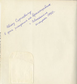 «Ивану Сергеевичу в день рождения от Ярамышевых. г. Севастополь. 30 августа 1976 г.»