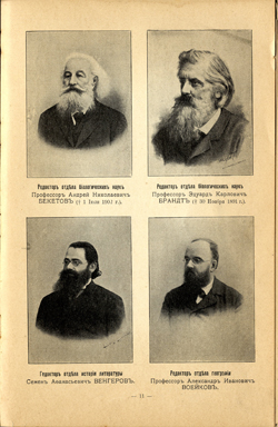 Ему удалось привлечь буквально всех светил тогдашней науки и практики. Вот перечисление только некоторых: историк Н.И. Кареев, химики Д.И. Менделеев и А.Н. Бекетов, философ В.С. Соловьев, юрист А.Ф. Кони, литературовед С.А. Венгеров, картограф Ю.М. Шокальский, библиограф Н.А. Рубакин и др.